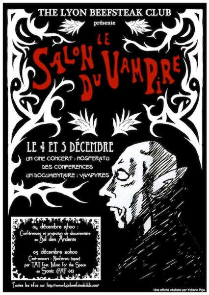 Dans le cadre du SALON DU VAMPIRE, le duo dark-folk TAT dont le convulsif Le Chiffre tient la basse, se produira sur scène en versus avec MUSIC FOR THE SPACE, side-project dark-ambient solo du Baron Von Schmock alias Herr Liebe du groupe Bak XIII, en ciné-concert pour proposer une bande son au célèbre film muet "Nosferatu le vampire" tourné en 1922 par le réalisateur expressionniste allemand Friedrich Wilhelm Plumpe plus connu sous son pseudonyme Murnau. La soirée se poursuivra par un mix thématique du Chiffre, accompagné par Darkt 56 aux platines. La veille, se seront tenues à la Librairie des Ardents des conférences sur "Le vampire moderne dans la littérature, de Anne Rice à Stéphanie Meyer" par Vladkergan (vampirisime.com) et sur "Dracula et son influence sur la littérature vampirique" par André-François Ruaud et Isabelle Ballester (co-auteurs des "Nombreuses vies de Dracula" paru aux Editions du Mouton Electrique), ainsi qu'un débat en présence de Father Sebastian à l'issue de la projection du film documentaire "Vampyres" réalisé par Laurent Coureau.![]()